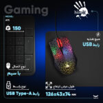 موس بلادی a70 یکی از سری موس های گیمینگ پر طرفدار و فوق العاده شرکت بلادی از زیرمجموعه های ای فورتک می باشد که با ابعاد ۱۲٫۵*۷٫۵*۴ میلی متر و وزن ۱۲۰ گرم تولید شده است. این موس با طراحی فانتزی و منحصر به فردی که دارد توانسته به محبوبیت بالایی در میان کاربران دست پیدا کند، برای استفاده از این موس می توانید کابل USB با طول ۱٫۸ متر آن را به کامپیوتر یا لپ تاپ خود متصل کنید.
