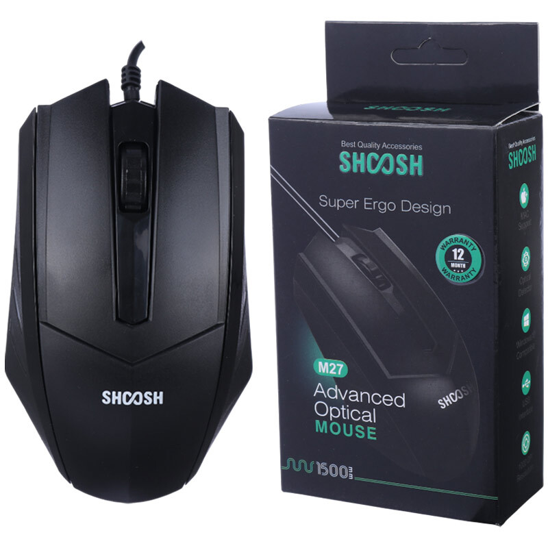 بررسی مشخصات موس باسیم Shoosh M27 با حسگر اپتیکال و دقت 1000DPI | خرید اینترنتی موس شوش مدل M27 با قیمت عمده از سایت تکنوسان