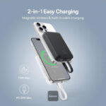 پاوربانک Magnetic Mini Wireless با بدنه نرم و سازگار با پوست، راحتی و زیبایی را در کنار هم ارائه میدهد. وزن سبک 216 گرم و ابعاد کوچک، حمل آن را در جیب یا کیف بسیار آسان میکند. آهنرباهای قوی با نیروی کشش 10 نیوتن، این پاوربانک را به پشت گوشیهای آیفون سری 15/14/13/12 متصل میکنند، حتی هنگام تماس یا عکاسی با یک دست. کابل داخلی USB-C دوطرفه (برای شارژ دستگاهها و پاوربانک)، نیاز به کابل اضافی را حذف کرده و با جنس مقاوم، دوام بالایی دارد. رنگ مشکی کلاسیک، این محصول را به اکسسوریای جذاب برای هر کاربر تبدیل کرده است.