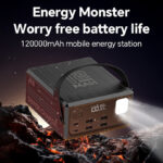 • ظرفیت فوق‌العاده ۱۲۰۰۰۰ میلی‌آمپر ساعت: شارژ چندین دستگاه به دفعات زیاد، مناسب برای سفر و قطعی برق.