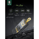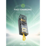 یکی از ویژگیهای بارز پاوربانک گرین لاین مدل Transparent Pro، وجود ۴ کابل متصل به بدنه است که شامل کابلهای لایتنینگ، تایپ سی، میکرو یو اس بی و یو اس بی میشود. این قابلیت به کاربران این امکان را میدهد که بدون نیاز به حمل کابلهای اضافی، به راحتی دستگاههای خود را شارژ کنند.