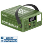 پاوربانک هوشمند برند کانفلون مدل A45Q با ظرفیت 100 هزار میلی آمپر یک انتخاب عالی برای استفاده در سفر، کمپینگ، گردشگری، و حتی استفاده روزمره است. این پاوربانک دارای یک دسته برای حمل آسان است.
