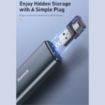نحوه اتصال و استفاده از این پرزنتر با استفاده از یک دانگل 2.4GHz است که دارای دو کانکتور است. یک کانکتور آن USB بوده و یکی دیگر از کانکتورهای آن Type-C است. این دانگل به صورتی طراحی شده که دارای یک درپوش است که می توانید هر پورتی را که از آن استفاده نمی کنید را با این درپوش بپوشانید. زمانی که استفاده ای از Baseus ACFYB-0G ندارید، می توانید این دانگل را درون خود ریموت قرار داده و از گم شدن آن جلوگیری کنید.