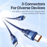 این ترکیب سرعت و کارایی، آن را به یک لوازم جانبی ضروری برای افراد علاقهمند به فناوری تبدیل میکند.علاوه بر این،کانکتورهای آلیاژآلومینیوم تحت فرآیند آبکاری قرارگرفته که این عملیات نه تنها از زنگزدگی واکسیداسیون جلوگیری میکند، بلکه دوام را افزایش داده و ظاهری ممتاز به آن میبخشد.این کابل ازشارژ همزمان چندین دستگاه با کانکتورهای Type-C، Micro و Lightning بصورت فست شارژ و PD پشتیبانی میکند.