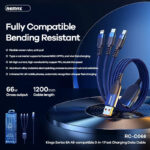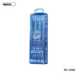 کابل فست شارژ سه در یک ریمکس RC-C068 به طور موثر نیازهای شارژ و انتقال داده شمارا برآورده میکند.این کابل همه کاره از چندین دستگاه بصورت همزمان پشتیبانی میکند وآن را برای کاربرانی که به انعطافپذیری وسرعت اهمیت میدهند، ایدهآل میسازد.دارای یک لایه بیرونی نایلونی بافته شده بادوام وانعطافپذیر است.