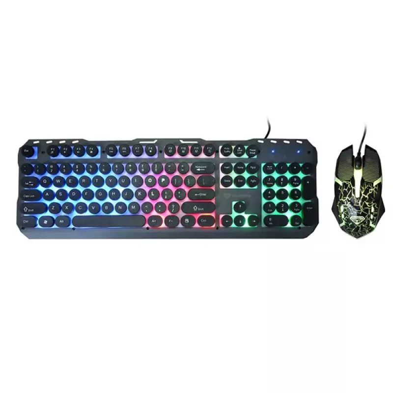 کیبورد و موس مخصوص بازی دیوی پارد مدل GMK-40کیبورد و ماوس مخصوص بازی دیوی پارد مدل GMK-40 یک ست ماوس و کیبورد بسیار مقرون به صرفه و در عین حال با کیفیت است که درای نورپردازی چند رنگ در کناره های کلید ها به صورت ثابت است که زیبایی بسیار خاصی به محصول می دهد. بدنه کیبورد دارای استحکام بالایی میباشد و کلید ها حداقل 30 میلیون ضربه را تحمل میکنند. کیبورد این محصول تنها دارای حروف حک شده انگلیسی است و حروف فارسی ندارد. ماوس دارای 3 کلید و نورپردازی چند رنگ است و 2400 DPI دارد . این محصول برای کسانی که خواهان ماوس و کیبورد گیمینگ مقرون به صرفه و در عین حال با کیفیت هستند بسیار مناسب است.